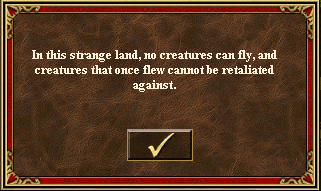 !!IF:M^In this strange land, no creatures can fly, and creatures that once flew cannot be retaliated against.^;